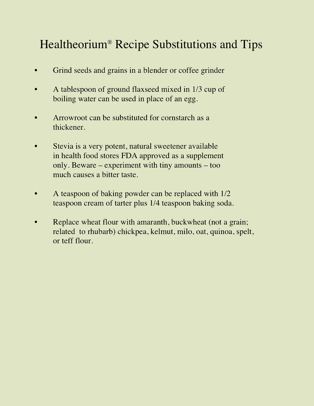 Healthy Recipes, Natural foods, healthy food recipes, nutritious real food, farm-to-table:  Substitutions, cooking tips, measuring, equivalents